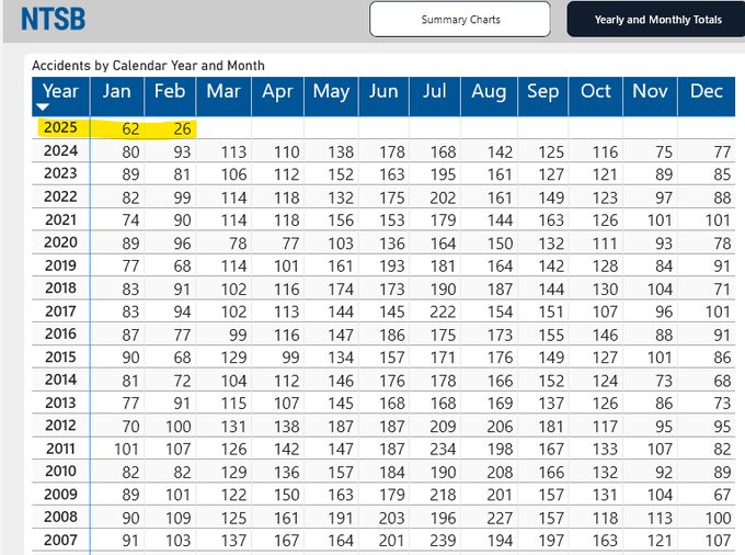 There's a narrative on the left that somehow these recent airplane crashes are directly related to Trump. Yet, the NTSB data suggests that crashed were significantly higher during the same period of Biden's first term.